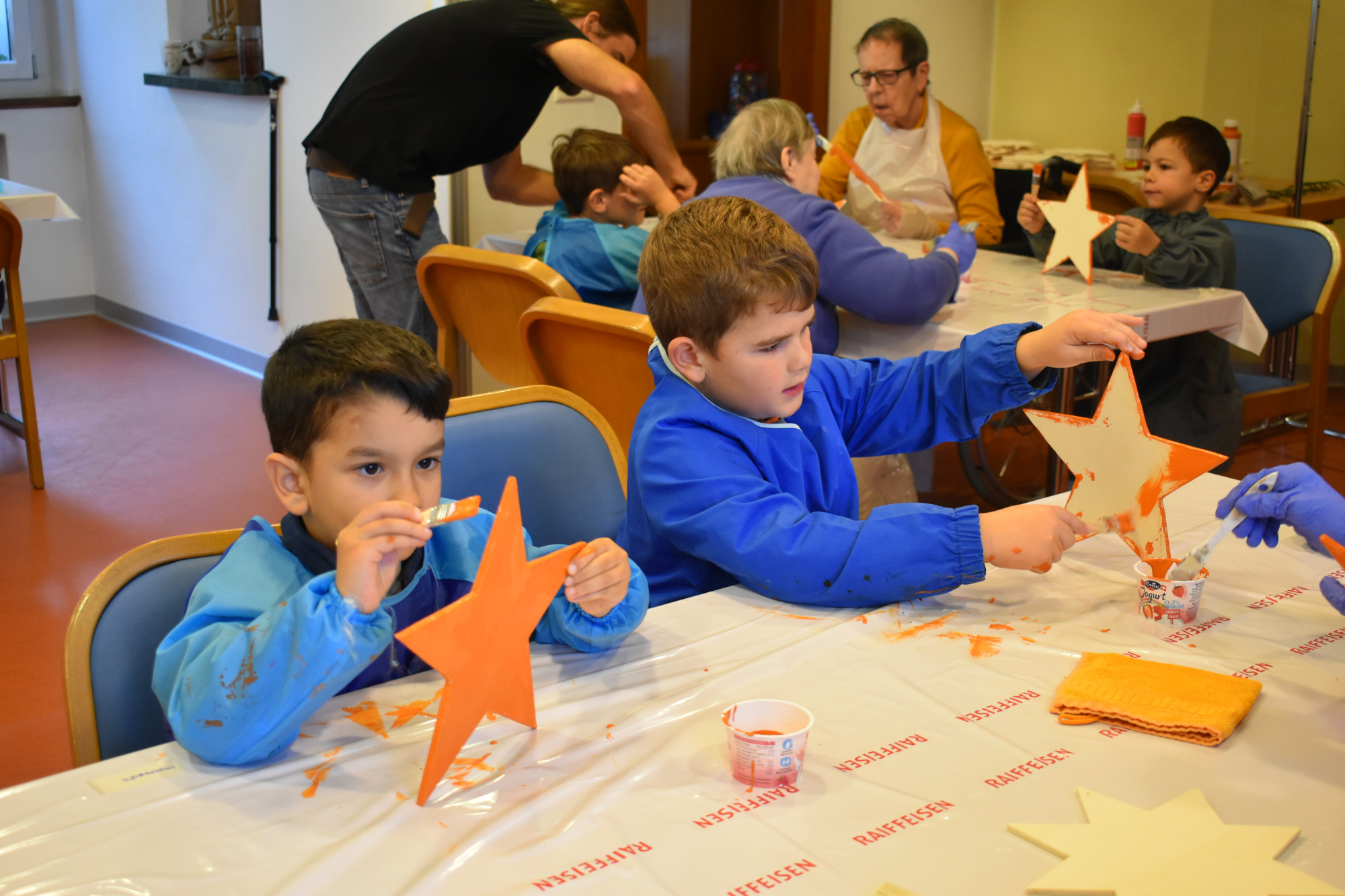 Nach intensiver Planung und sorgfältiger Vorbereitung – insbesondere durch das Aktivierungsteam – wurden im Vorfeld die Holzsterne ausgesägt. Jedes Kind durfte dabei auch einen eigenen Stern mit meiner Hilfe aussägen.